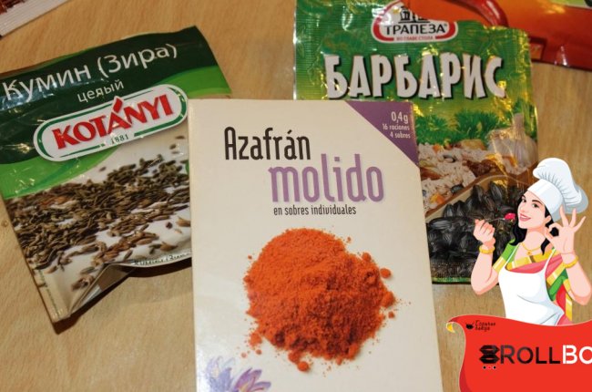 - Специи для плова - зира, кориандр, барбарис, сладкая паприка, красный молотый перец, соль, шафран (можно заменить на куркуму)