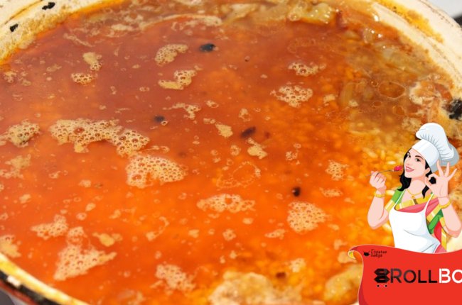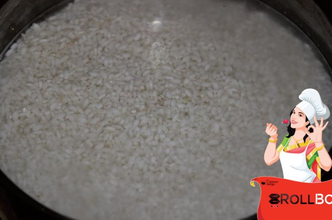 Вливаем ещё около 0,5 литра кипящей воды через шумовку, вода должна немного прикрыть рис.