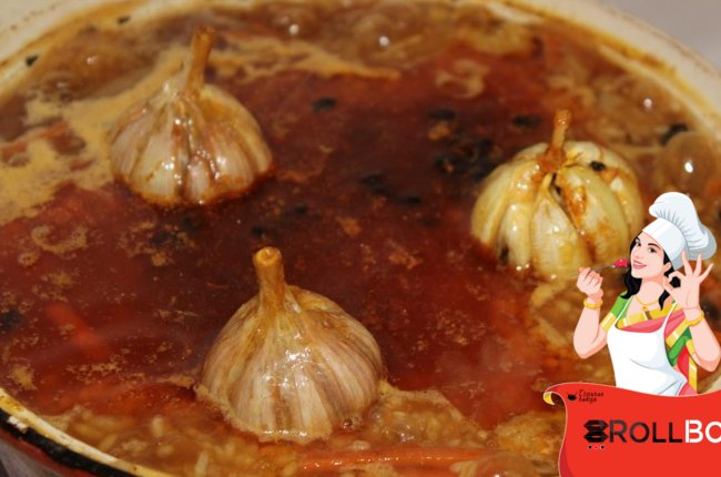 Высыпаем оставшиеся специи и на сильном огне доводим до кипения. Снова утопите чеснок в рисе.
