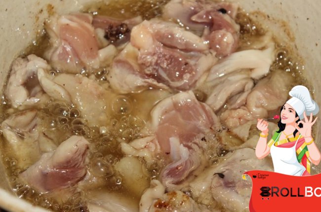 В казан или толстостенную глубокую посуду положить куриный жир и вытопить его до шкварок. Шкварки вынуть.
