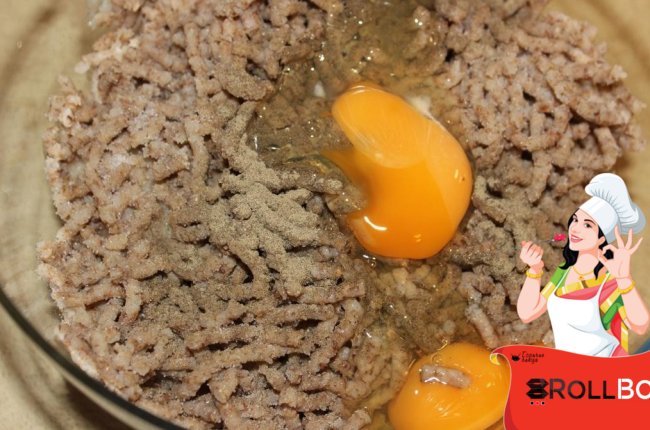 Солим, перчим и вбиваем яйца.