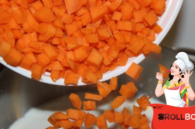 Тыкву помыть, очистить от шкурки и нарезать кубиками.