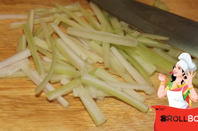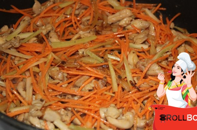 Морковь и сельдерей тонкой соломкой. (Для моркови я использовала терку для корейской моркови)