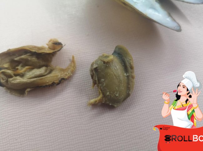 Отобрала потом живые мидии... Знаете как проверить, что они живы? если раковина открыта, а тело моллюска при воздействии на него не убирается вовнутрь, то эти мидии выкидываем, они сдохли.