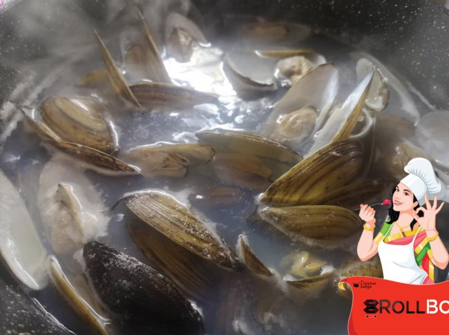 Затем промывала мидии в воде со столовой ложкой соли... раза три...