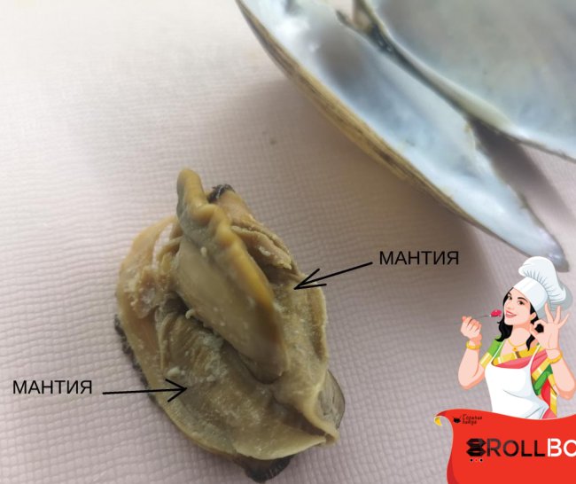 Все части мидии съедобные... если бы это были бы морские мидии, то мантию я бы не убирала... в этом случае убрала. Все-таки она циркулирует воду.