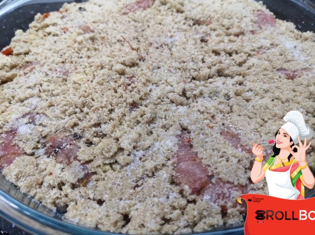 6. Сверху равномерно посыпьте смесью панировочных сухарей.