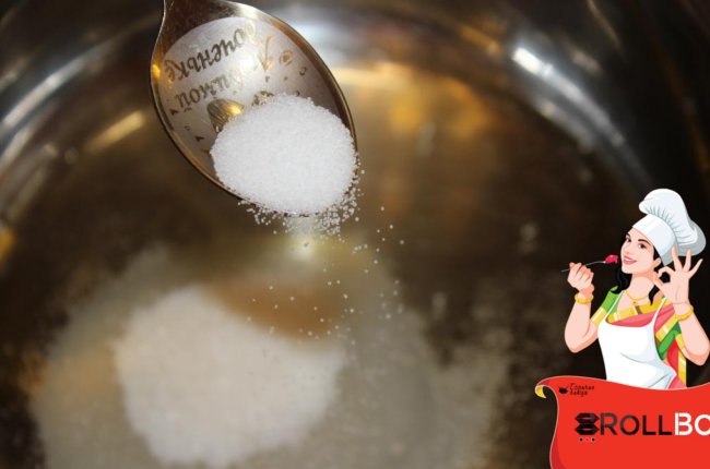 Параллельно занимаемся заправкой. Всыпаем в рисовый уксус (не перепутайте с обычным!) сахар и соль. Помещаем на медленный огонь, помешивая. Когда сахарный песок и соль растворятся в уксусе, снимаем смесь с плиты.