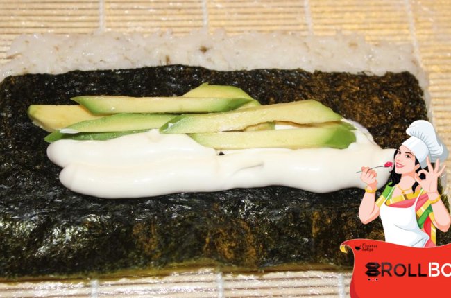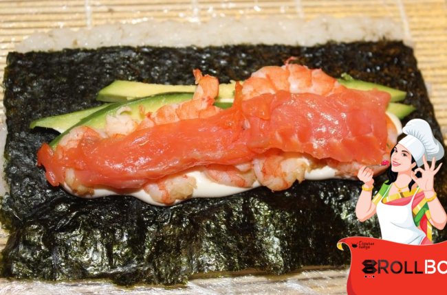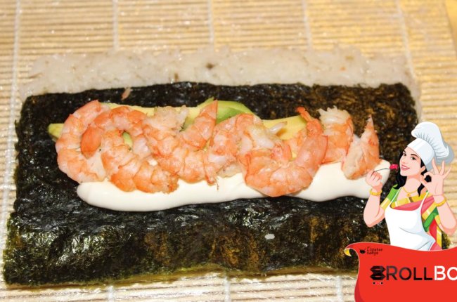 Ингредиенты Нам потребуется специальный коврик для роллов - бамбуковая циновка. Рис круглозёрный - 1 стакан Сахарный песок - 1/2 ст.л. Соль - 1/2 ч.л. Рисовый уксус - 50мл Вода - 1,5 стакана Авокадо (спелый)- 1 шт Икра летучей рыбы Креветки королевские Форель/сёмга - малосолёная Нори Майонез