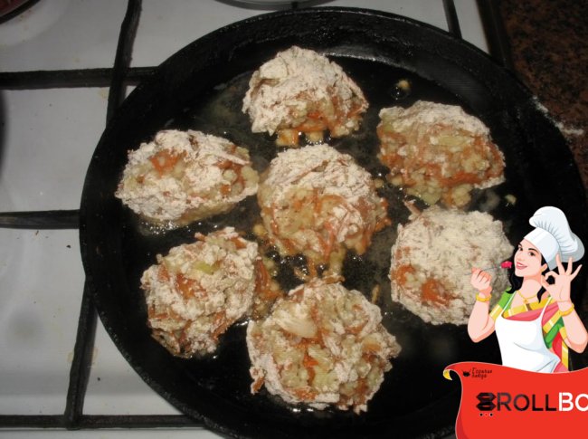 Небольшие котлетки обваляйте в муке и жарьте на слабом огне в растительном масле с двух сторон.
