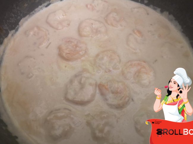 Вливаем сливки, устричный соус. Прогреваем до небольшого загустения соуса.