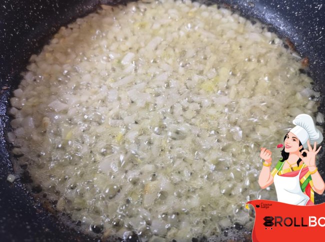Репчатый лук очистить, нарезать кубиками и обжарить на растопленном сливочном масле (добавила еще чуть растительного масла) до золотистого цвета.
