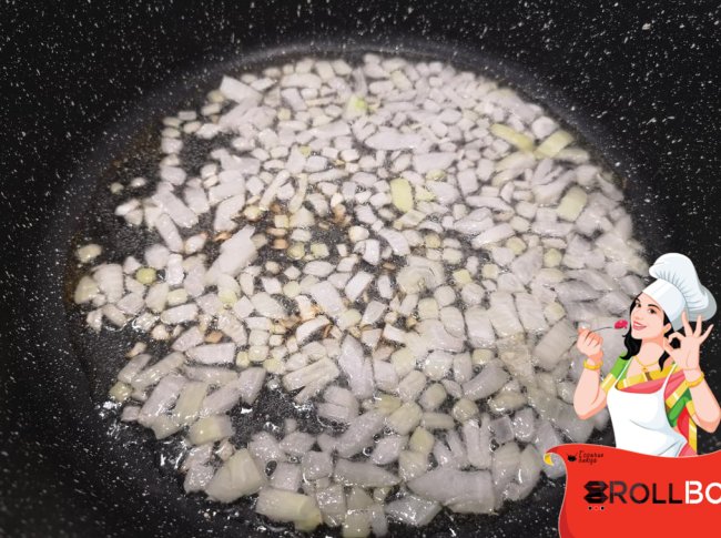 Сначала надо мелко нарезать репчатый лук. Обжарить его на растительном масле до золотистого цвета.
