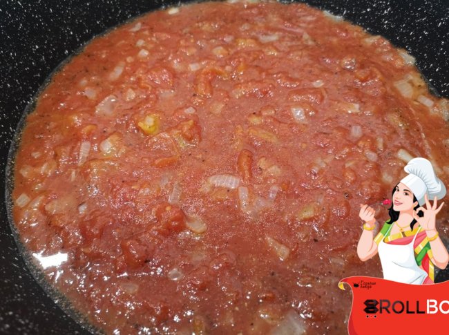 Добавляем измельченные томаты. Солим, перчим... Томим все минуты три.