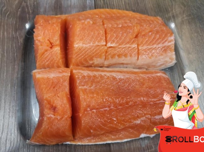 Филе семги надрезала по порциям не до конца... уложила в форму.