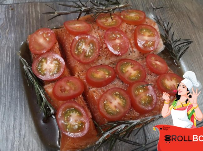 Ингредиенты филе семги на коже - 500 гр. соевый соус - 2 ст.ложки лимонный сок - 1 ст.ложка соль по вкусу томаты черри - 4-5 шт. сыр - 50 гр. розмарин молотый черный перец по вкусу Приготовление Филе семги надрезала по порциям не до конца... уложила в форму. Сверху полила соевым соусом, лимонным