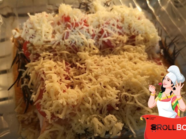Потом достала, убрала фольгу. Посыпала рыбку сверху натертым на мелкой терке сыром и поставила опять в духовку на 10 минут.