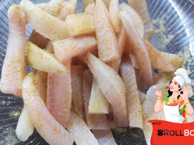 Посыпала приправой для рыбы и дала промариноваться где-то часик. Туда уже входит соль, так что не солила... можно просто посолить и поперчить.