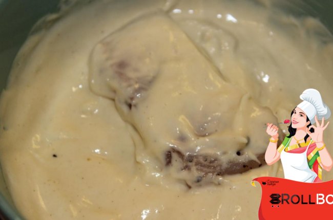 Рыбу обмакнуть в соус и выложить на луковую подушку.