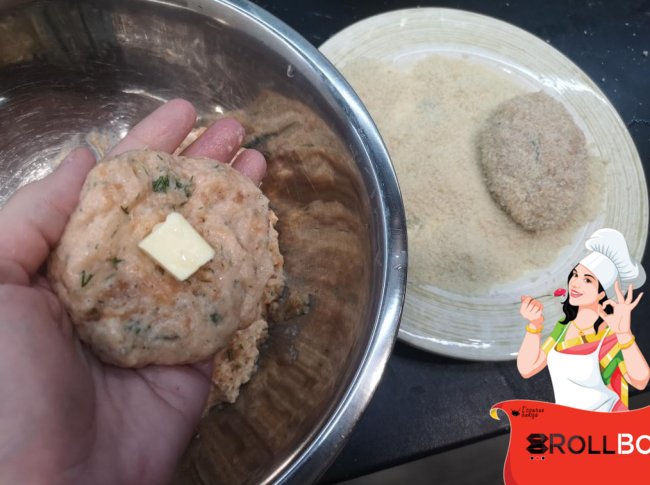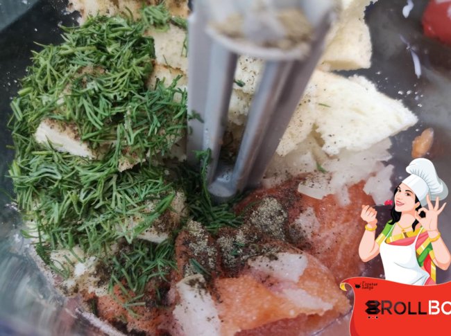 Ингредиенты филе красной рыбы - 250 гр. (у меня форель) яйцо - 1 шт. хлебный мякиш - 30 гр. (без корок) + молоко репчатый лук - полштучки соль, молотый черный перец по вкусу зелень укропа - 1 стебель сливочное масло панировочные сухари Приготовление В измельчитель положила филе рыбы, яйцо,