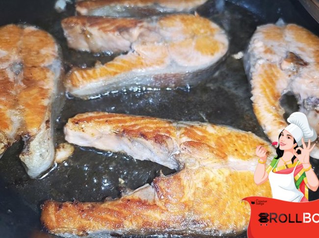 Стейки форели посолила с двух сторон и обжарила на растительном масле по 7-8 минут с каждой стороны.