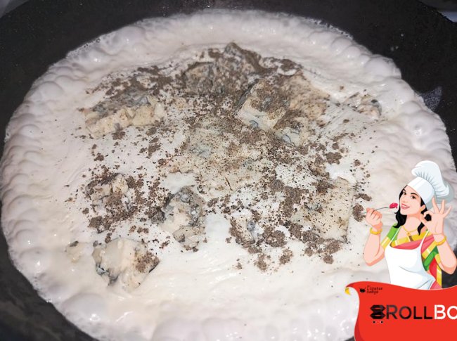 Для соуса довела сливки до кипения, положила нарезанный сыр... поперчила...