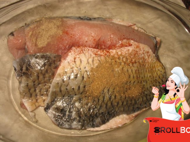 Ингредиенты Филе карпа приправы минимум продуктов и трудозатрат Приготовление Филе карпа солим, посыпаем пряностями размазываем по обеим сторонам, выкладываем на противень запекаем до румяности