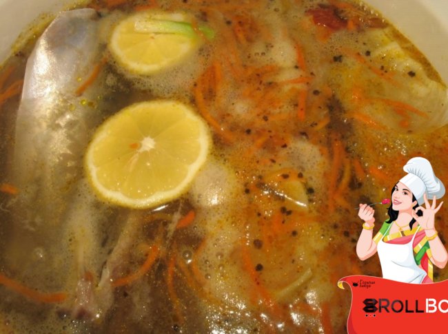 припускаем на слабом огне минут 15 после закипания, выключаем, остывает рыба в бульоне – за это время маринование продолжается. Есть ее можно в течение 2 суток.