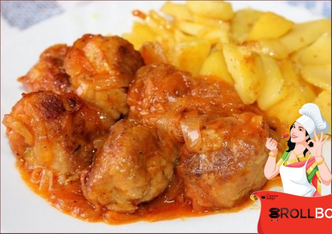 Тефтельки выложила в керамическую форму для запекания,залила соусом и поставила в разогретую духовку минут на 10-15.