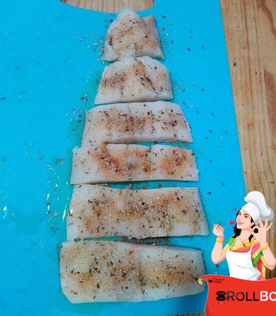 Сначала рыбку посолила, поперчила. Смешала чеснок, семена укропа и орегано... и посыпала приправками рыбку.