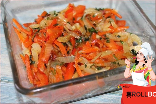 У меня картошечка и овощи...Перец был небольшой,поэтому добавила побольше морковки и лука....Просто обжарила морковку,затем добавила лук,затем перчик и обжаривала помешивая,чтобы перчик стал помягче.За пару минут до готовности добавляем соль,чуть-чуть сахарку,молотый перчик и измельченные чеснок с петрушкой.Закрываем крышкой,убавляем огонь до самого маленького и через пару минут выключаем.