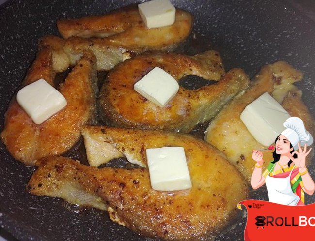 Потом я обжарила на разогретом растительном масле рыбу по 7-8 минут с каждой стороны.