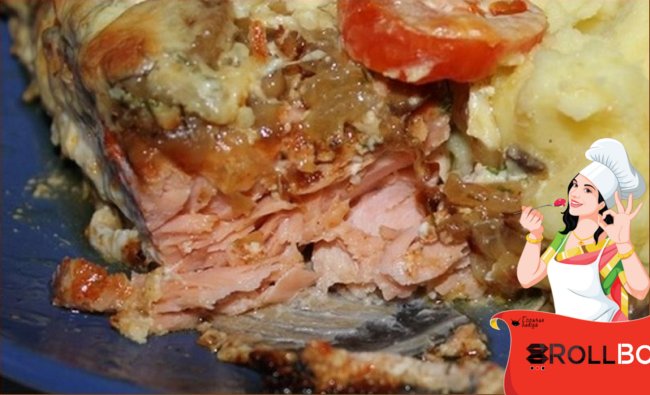 Ингредиенты рыба шампиньоны лук мука помидоры черри сметана майонез сыр соль, перец, приправа для рыбы, сухой чеснок, лимонный сок укроп оливковое масло Приготовление Сегодня у меня очень вкусная рыбка!В морозилке был кусок филе кижуча на коже примерно около 400 г или чуть побольше...и немного
