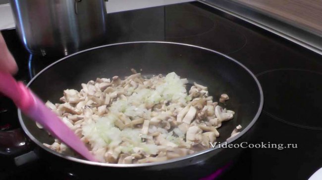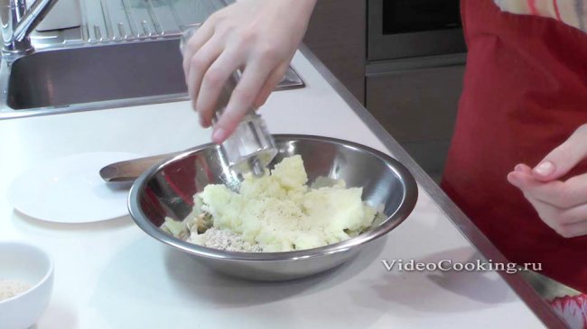 Запеченный грибной рулет Мелко нашинкованные грибы тушить в собственном соку до тех пор, пока не испарится основная часть жидкости, выделившейся из свежих грибов. К концу тушения добавить измельченный лук, спассеровать. Смесь охладить, затем положить геркулес, картофельное пюре и приправы. Если