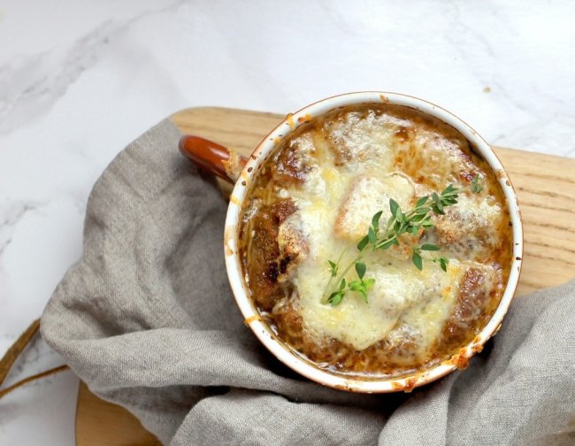 Луковый суп с гренками и сыром