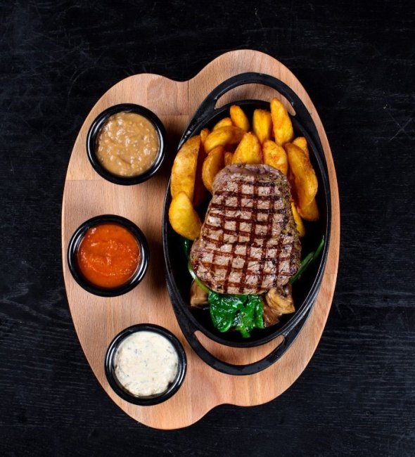 Идеальный стейк с гарниром (запеченный картофель, сезонные овощи)