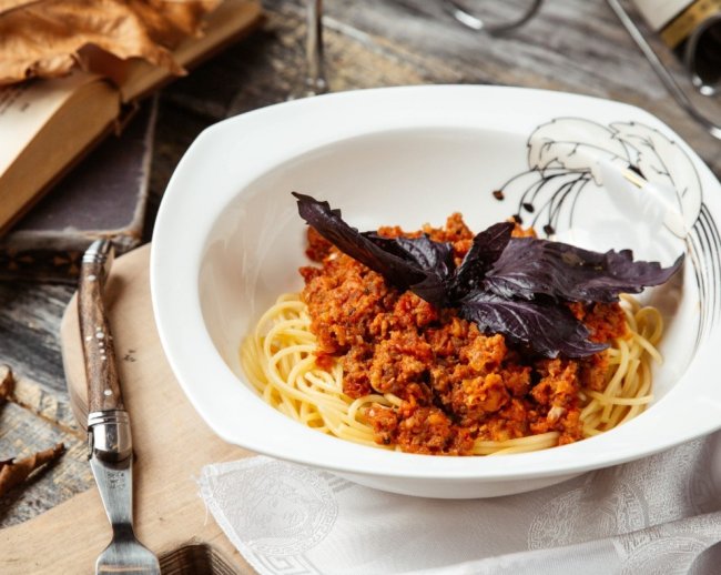 Основа блюда – медленное томление соуса. Обжарьте мелко нарезанный лук и морковь (так называемый софритто), добавьте фарш и тщательно обжарьте его до румяной корочки для насыщенного вкуса. Обязательно деглазируйте сковороду, например, белым вином или бульоном, затем добавьте томатную пасту и помидоры. Доведите соус до кипения и тушите на слабом огне 1–2 часа. Чем дольше соус готовится, тем вкуснее он становится: мясо размягчается, а ароматы гармонично сочетаются. Это блюдо требует времени, но процесс довольно прост.