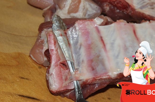 С рёбер снимаем заднюю плёнку.
