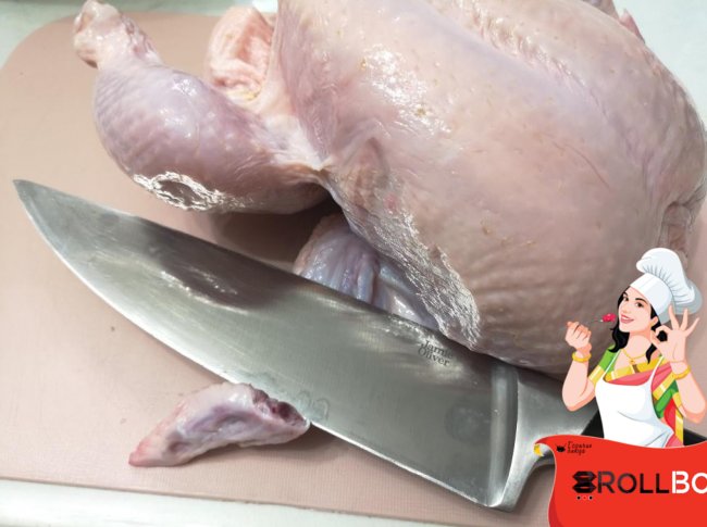 Сначала займемся курицей. Отрежем у курицы на крылышках 3 фалангу, кожу с шеи.