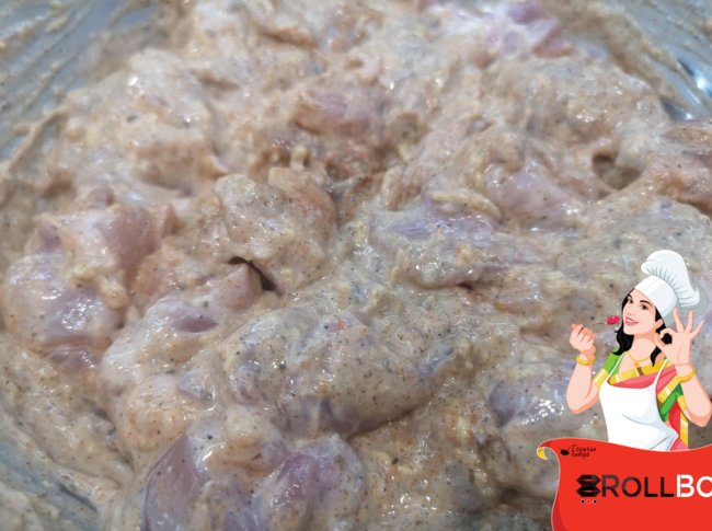 Уложить в блюдо. Туда же йогурт, гарам масалу, паприку, зиру, сахарный песок, соль, молотый перец, чеснок и имбирь, натертые на мелкой терке, лимонный сок. Перемешать. Дать курице промариноваться где-то час.