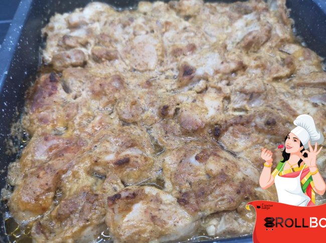 Потом выкладываем курочку в форму так, чтобы кусочки были равномерно распределены.