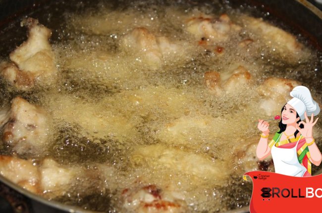 В сотейнике разогреть растительное масло, его должно быть много, чтобы крылья кипели во фритюре.