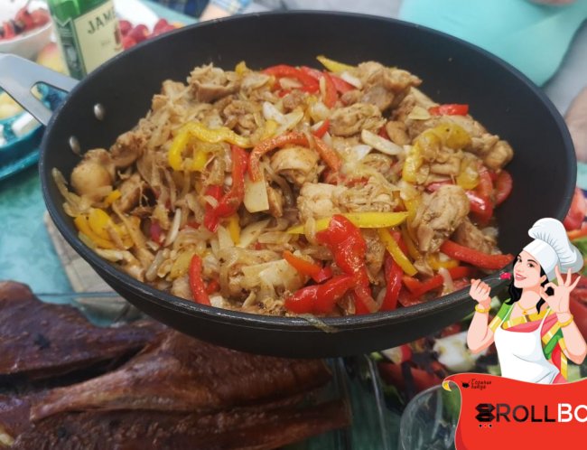 Место лука занимает болгарский перец, нарезанный соломкой, и нарезанный слайсами чеснок... Берите разноцветный перчик, будет красочней блюдо.
