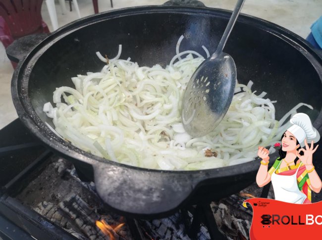 А в казан высыпаем репчатый лук,нарезанный полукольцами. Обжариваем до прозрачности.