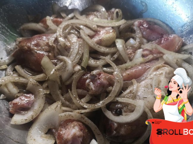Ингредиенты куриные запчасти ~ 700 гр. репчатый лук - 2 шт. чеснок - 1 зубчик молотый черный перец - 0,5 ст.ложки лавровый лист - 3 шт. ягоды можжевельника - 0,5 ч.ложки молотый тмин - 0,5 ч.ложки соль - 0,5 ч.ложки итальянские травы - 1 ч.ложка растительное масло - 150 мл Приготовление Для