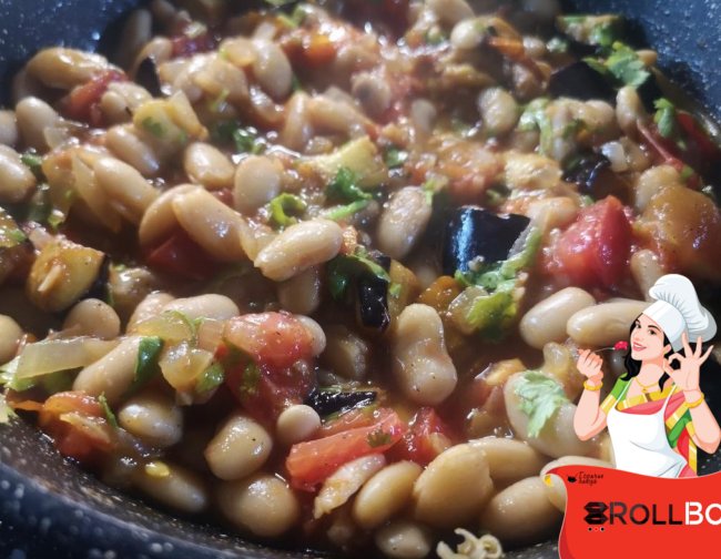 При подаче кладем фасоль с баклажанами, а рядом курочку. Украшаем зеленью кинзы.