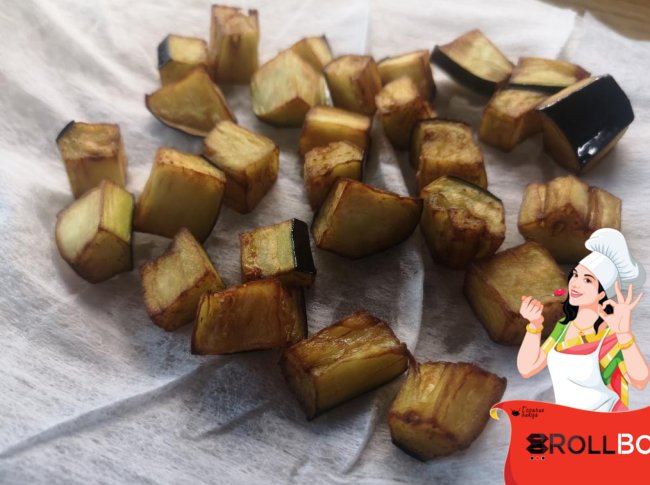 Наливаем растительное масло в сотейник... хорошо его разогреваем (у меня на термометре было где-то 140С). Жарим баклажаны до красивого золотистого цвета. Выкладываем баклажаны на салфетку.