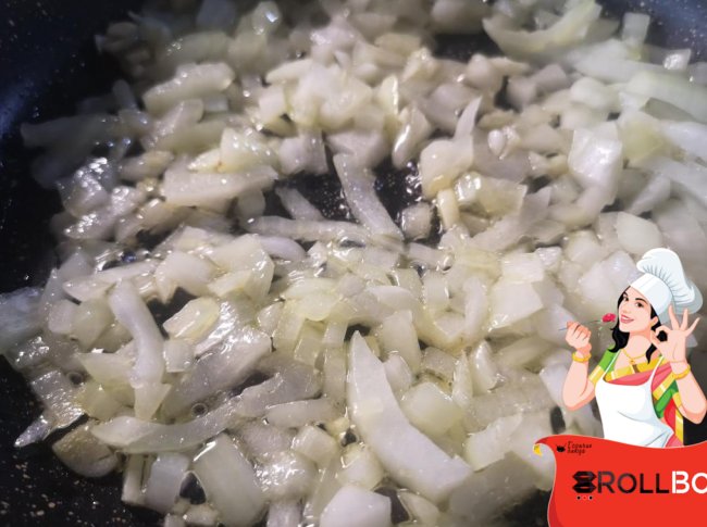 Репчатый лук режем на небольшие кубики, чеснок мелко нарезаем и обжариваем на оливковом масле на небольшом огне...