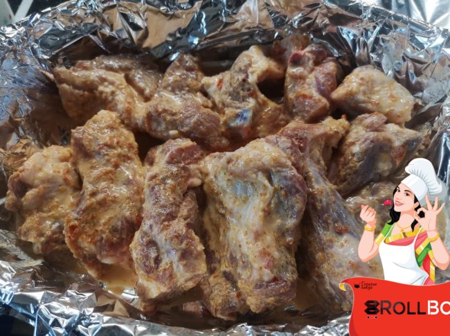 Форму покрыла фольгой... уложила ребрышки. Сверху так же накрыла фольгой...