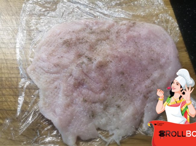 Сверху убираем пленку... Солим, перчим с одной стороны.